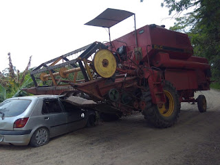 O condutor da colheitadeira não se feriu.